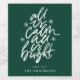 Elegante, moderne Ferienweinetiketten mit dem Satz "Alles ist ruhig, alles ist hell" in einem weißen, handgeschriebenen Drehbuch mit Sternexplosion Akzenten vor einem grünen Hintergrund. Personalisieren Sie das Ferienweinetikett, indem Sie Ihren Namen oder Ihren eigenen Text hinzufügen.