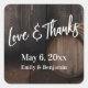 Handschrift Liebe & Dank braunes Holzfässchen Quadratischer Aufkleber