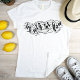 Handschrift mit schwarzem Durchfluss auf Weiß T-Shirt