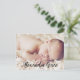 Personalisiert mit dem Foto des Babys auf der Vorderseite und einer besonderen Nachricht auf der Rückseite. Dieses Design verwendet einen eleganten Schriftart für das Handling von Skripten für den Namen von Babys für eine Touch von Eleganz. Äußern Sie Ihre Begeisterung, wenn Sie die Geburt Ihres Kindes ankündigen, und senden Sie gleichzeitig Ihre Dankbarkeit. *Bitte zögern Sie nicht, mich zu kontaktieren, wenn Sie Hilfe bei meinen Designs benötigen.
