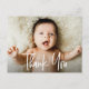Mit unserem "Modern Handlettering Script Horizontal Foto Baby Shower Danke Postcard" möchten wir Ihnen herzlich danken. Dieses elegante Postkartendesign verbindet das Foto Ihres Babys nahtlos mit der stilvollen Schriftzeichen-Typografie und schafft so eine personalisierte und durchdachte Möglichkeit, Freunden und Familie für ihre Liebe und Unterstützung während dieser besonderen Zeit zu danken. Kundenspezifische Dankeschön: Personalisieren Sie diese Postkarte mit dem Foto, dem Namen und einer persönlichen Danksagung Ihres Babys. Es ist ein einzigartiger und herzlicher Weg, um denjenigen, die mit Ihnen gefeiert haben, Ihre Wertschätzung zu vermitteln. Skripttypografie: Die moderne Schrift-Typografie verleiht Ihrer Dankeschön-Dir-Postkarte eine Touch von Eleganz und Charme und macht sie zu einer stilvollen Wahl, um Ihre Dankbarkeit zum Ausdruck zu bringen. Vielseitiger Gebrauch: Diese vielseitige Karte ist als Baby-Dusche-Dankeschön-Postkarte konzipiert und kann auch für andere Anlässe verwendet werden, was sie zu einer wertvollen Ergänzung Ihrer Briefmarkensammlung macht. Zeigen Sie Ihre Wertschätzung mit Stil mit unserer "Modern Script Custom Newborn Foto Baby Shower Dankeschön Postcard". Es ist eine personalisierte und elegante Art, Ihren Lieben für ihre Unterstützung und Wohlwünsche zu danken.