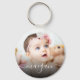 Erstellen Sie Ihren eigenen personalisierten runden Schlüsselanhänger mit Ihrem individuellen, modernen, handgeschriebenen Skriptnamen und Ihrem Lieblings-Baby-Foto.