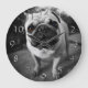 Schwarz-Weiß-Foto eines sehr gut aussehenden Mops mit großen, glänzenden braunen Augen. Gutes Geschenk für sich selbst oder den Mops Liebhaber in Ihrem Leben.