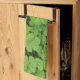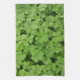 Grünes frisches Kleeblattgras Küchentuch. Ränder auf Kleeblatt Küchentuch.
