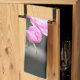 Schöne rosa Rose schmücken diese Küche oder das Handtuch mit einer Vogelhaus-Silhouette. Gartentexte können personalisiert oder abnehmbar sein. Stilvolles Zuhause Dekorationsgeschenk.