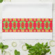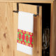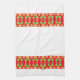 Modernes Küchenhandtuch mit kleinen gelben Blumenmuster und größeren roten Blume. Der weiße und der rote Hintergrund können in jede Farbe geändert werden. Stilvolle Akzente für Zuhause- oder Hütte-Küche oder Powderzimmer.