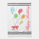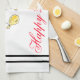 Schwarze Streifen mit Ballonkunstdruck. Ein Designer-Teetuch zum Geburtstag, ein stilvolles Geschenk oder ein Dekorator. Der weiße Hintergrund kann auf eine beliebige Farbe umgeschaltet werden. Hübsche personalisierte Geschenkidee für jedermanns Geburtstag.
