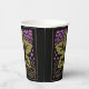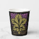 Dieser Papierbecher zeigt Leslie Sigal Javoreks Adaption eines klassischen amerikanischen Handwerkermusters mit einem großen, moosbewachsenen, grünen Single, umzäunten Weinreben, umgeben von Trauben in orchiden Gewürzen, das Set auf schwarz für dramatischen Flair. Ideal für Ihr nächstes Party beim Weinverkostung!