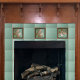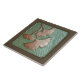 Dieses Gingko Blatt Fliesen hat eine Divet - sehen Sie grün Hintergrund. Die Ginkgo-Blätter sind metallisches Kupfer. Der Außenrahmen ist aus Holz, mit Kamin, Küchenecke oder Bad. Das kommt von einer handgefertigten Kachel des Oregon Kachelmachers Fay Jones Day.