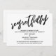 Diese Suite zeichnet sich durch den modernen, handgeschriebenen Script-Schriftart aus, der für Akzente verwendet wird. Falls Sie Ihren Gästen gelassen werden müssen, dass Ihre Hochzeit abgesagt wurde, bietet diese Karte eine kühne und auffällige Option. In diesem Stück wurde der handgeschriebene Script-Schriftart verwendet, um eine grafische Darstellung des Wortes "bedauerlich" zu erstellen. Verwenden Sie die Vorlagenfelder, um Ihre persönlichen Daten hinzuzufügen und dieses einzigartige, moderne Design zu Ihrem eigenen zu machen. Der weiße Hintergrund kann in eine beliebige Farbe geändert werden. Bitte kontaktieren Sie uns für spezielle Anfragen oder für individuelle Betreuung. // 100 //