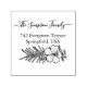 Beautiful return address stamp template featuring a handwritten family name flanked by delicate wildflower branches, with the family address underneath. This charming and elegant design adds a personal touch to envelopes, invitations, holiday cards, and everyday correspondence. Perfect for personalized stationery, wedding return addresses, and modern yet classic mail designs.