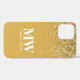 Moderne Handy Case in Gelb Gold und Gold Glitzer, elegant mit Ihrem Skript Monogramm, Vorname und Initial.