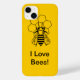 Grafisches Bild von Honigbienen, die auf den Zellen von Wabenwürfeln sitzen. Im Text steht "I Liebe Bees!"