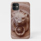Löwenkopf. Nähere Angaben zu einem Türknopf/Puller. Er hält einen Ring im Mund.