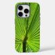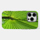 Grüne Palmenfront im nah-up-Blick. Sonnenlicht erhellt die Blätter von hinten.