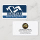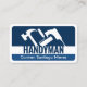 Eine blaue Farbabdeckung zeichnet sich durch ein schlichtes negatives Raumdesign aus, bei dem sich der Firmenname "HANDYMAN" mit der Oberschicht verbindet. Darunter liegt Ihr angesehener Name. Oben befindet sich ein Werkzeugdesign, das mit einem Hammer-Pinsel-Bohrwerkzeug ausgestattet ist. Auf der Rückseite, in einem weißen Cover, oben ist ein goldenes Zuhause-Landschaftslogo, das Sie benutzen können. Danach folgen Ihr Name, die Kontaktdaten und ein Slogan, um Ihre Dienste bekannt zu machen. Ein großartiges Design für Handwerker und Bauunternehmen. #handyman #construction #builder #tragning #remodeling #building #homerepair #generaltragnant #handymantools #homerepairtraiter #zazzlemade