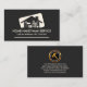Ein dunkelgraues Cover mit einer kreativen rechteckigen Box, die ein "Zuhause-handyman tools"-Design hat. Darunter finden Sie Ihren Firmennamen und die Kontaktdaten. Oben auf der Seite befindet sich ein goldenes Hammerlogo, gefolgt von Ihrem angesehenen Namen, den Kontaktdaten und einer Slogan-Beschriftung, mit der Sie Ihre Dienste veröffentlichen können. Eine Kreativkarte für Handwerker und Gebäude-Bauthemen.