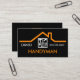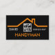 An all black cover features a rooftop building that has a white handyman tools window frame. To its left is your prestigious name with the contact details in the opposite direction. Near the base of the card is the oversize business name "HANDYMAN" which you can change.