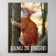 Hang in There Das Cat Ermutigungspaket zeigt, wie eine gelbe Katze mit "Hang in There" in einem lustigen Schriftart an einem Baum klammert.