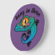 Hang in There farbenfroher Gecko Große Wanduhr