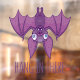 Vector Cartoon Illustration einer wackeligen Vampirfledermaus, die mit der Phrase Hang In There auf dem Kopf hängt. Stichworte: Tier, Fledermaus, Fliegen, Fliegen, Halbwal, Säugetier, beängstigend, spooky, Vampir, Flügel, lila, Inspiration, niedlich, albern, Motivation, motivierend, Hilfe, hängen, inspirierend