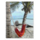 Foto einer Hängematte zwischen zwei Palmen an einem karibischen Strand.