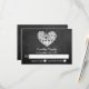 Diese Hochzeitskarten sind mit einem romantischen Hängebaum versehen, und bald werden Ehemann und Ehefrau sein, die in Herzform geschnitzt wird. Der Chalkboard-Effekt-Hintergrund macht diese RSVP-Karten perfekt für jedes Paar, das eine schicke, moderne Hochzeit plant. Diese RSVP-Karten können leicht an den Anzug Ihres Party angepasst werden und funktionieren auch hervorragend für Verlobungen, Brautpartys, Jubiläumsantworten und vieles mehr.