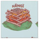 Eine Illustration einer Hanggrube, die zum Kochen von Kai vorbereitet wird. Ein großes Feuer erhitzt Felsen. Diese werden zusammen mit feuchten Säcken zu Dampf-Essen begraben. Hangi ist eine traditionelle Form der Küche in Aotearoa Neuseeland.