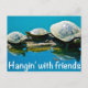 Manchmal will du einfach, dich mit deinen Freunden zu unterhalten. Kein Zeitplan, keine Agenda, nur mit ihnen. Diese drei Schildkröten, die sich auf einem Baumstamm in einem blauen Teich sonnen, repräsentieren genau die Art, wie Sie sich fühlen.