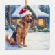 Hanoverian Scenthound Snowy Forest Cabin Santa Hat Keramikornament