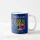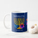 Moderne, stilvolle HANUKKAH BLESSINGS Kaffeemaschine mit großer Menorah (hanukkiyah) in der Mitte und blauer dreiel und farbenfroher Star of David auf beiden Seiten. Text liest HANUKKAH SESSINGS und VON UNSERER ZUHAUSE ZU IHNEN. Beide sind KUNDENBAR, sodass Sie Ihre eigene Nachricht anpassen, Ihren Namen hinzufügen oder als Geschenk für Firmenanlässe anpassen können. Das Design wird auf der Rückseite wiederholt und in der Mitte befindet sich ein ZOLLBARES MONOGRAM in einem weiteren farbenfrohen Star of David. Dies wäre ein großartiges Geschenk während der Hanukka-Saison, zum Geburtstag und während des ganzen Jahres, wenn personalisiert. Wählen Sie aus einer großen Auswahl an Kunsthandwerkskarten und Geschenken, die von Berean Designs entworfen wurden.