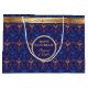 Erste Kerze von Hanukkah. Happy Hanukkah Festival der Lichter Party Geschenk Beutel Schönheit jüdische Ferienkarte. Schöner jüdischer Holiday Chanukah Hintergrund mit traditionellen Chanukah dekorativen Symbole - hölzerne dreidels (drehen oben), Donuts, hanukkiah menorah, Kerzen, Stern von David und glühende Lichter Wallpaper Gold hanukkiah marineblau Muster. Hanukkah Festival der Lichter Event Dekoration. Jerusalem, Israel. Geschenkartikel & Party > Geschenkartikel > Geschenktaschen mit Textvorlage. Personalisieren Sie sie durch Hinzufügen von Namen oder Wunschtext. Zwei Seiten Design. Anpassen