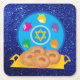Schöne Square Untersetzer - Set 6 - Mit Hanukkah Plate mit Dreidels Blue Imitats Glitzer Design - Ideal für Hanukkah Partys!
