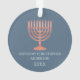Personalisieren Sie dieses doppelseitige Foto in dunkelblau mit einem Imitat Holzkornmenorah als niedliche Sitte Mein Erste Hanukkah oder Unser Erster Hanukkah-Sake. Fügen Sie Ihr Foto zur Vorderseite, wo es in ein rundes Bild mit hellblauem Rahmen auf dunkelblauem Hintergrund geschnitten wird. Personalisieren Sie den gewölbten Text am unteren Rand, wenn Sie wollen, dann bearbeiten Sie die Rückseite des runden Hanukkah-Ornament, wo es eine Textvorlage für Ihren Namen und das Jahr, wenn Sie wünschen, alles unter den rustikalen Imitaten Holz menorah Grafik. Erschaffen Sie einen einzigartigen Hanukah-Sake mit diesem zweiseitigen Ornament-Design.