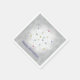 Napkins mit meinem Design für Hanukkah aus dem Star of David mit kleinen bunten Schneeflocken auf einem grauen und weißen frostigen Look Hintergrund mit Text, der sagt "Happy Hanukkah".