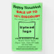 Happy Hanukka! Herzlichen Glückwunsch, Frieden und Segen dieses Fest der Lichter. Feiern Sie diesen Dezember und werben Sie auch für Ihr Geschäft. Maßgeschneidertes Banner mit Hanukkah Sale, Ihrem Firmennamen und anderen Informationen. Banner, die Sie als Marketing-Material verwenden können, um mehr Kunden zu gewinnen. Anpassen und anzeigen, um mehr Kunden davon zu überzeugen, Ihre Produkte oder Kunden zu kaufen, um Ihre Dienstleistungen zu mögen. Designfarben sind dunkelgrüne und rote Texte auf hellgrünem Hintergrund. Inhalte sind Happy Hanukkah Gruß, Verkaufstexte mit prozentualen Rabatt, die Sie anbieten, Verkaufstermine, Ihr Firmenname, Logo, Adresse, Telefonnummer, E-Mail und Website oder Ihre Business Social Media-Seite. Bitte Karo des Erscheinungsbildes nach dem Hochladen von Logos und Schriftzeichen. Wenn Ihnen das Aussehen gefällt, können Sie jetzt Ihre Bestellung aufgeben. Wenn Sie das Logo und die Texte ändern und verschieben müssen, um auf dieses Banner oder auf die gewünschte Größe zu passen, ändern Sie bitte das Design-Tool. Sie können auch die Hintergrundfarbe, die Farbe des Schriftartes und den Stil des Schriftartes im Designwerkzeug ändern. Happy Hanukka! Wir wünschen Ihnen mehr Umsatz in diesem Urlaub.