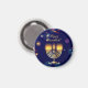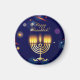 Happy Hanukkah Party Jewish Holiday decorative Menorah. Hanukkiah Symbol. Jewish Holiday Chanukahs Decoration with traditional Chanukah decorative symbols - Navy Blue color, colorful dreidels Chanukah wooden toys (spinning top), star of David and neon blue glowing lights illustration. Hanukkah Festival of lights Event Decoration. Jerusalem, Israel. Home & Living > Kitchen & Dining > Kitchen Accessories > Magnets Judaica Modern Design. For a festive Hanukkah 2025 table setting.