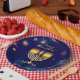 Happy Hanukkah Party Jewish Holiday decorative Menorah. Hanukkiah Symbol. Jewish Holiday Chanukahs Decoration with traditional Chanukah decorative symbols - Navy Blue color, colorful dreidels Chanukah wooden toys (spinning top), star of David and neon blue glowing lights illustration. Hanukkah Festival of lights Event Decoration. Jerusalem, Israel. Crafts & Party Supplies > Party Supplies > Tableware > Paper & Party Plates Judaica Modern Design. For a festive Hanukkah 2025 table setting.