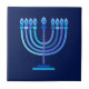 Hanukkiah-Symbol. Happy Hanukkah Party Jüdischer Urlaub Blue Menorah. Jüdisches Holiday Chanukkah Dekoration mit traditionellem Chanuka Dekorationssymbol - Navy Blue Farbe hanukkiah menorah, Kerzenhalter mit Kerzen, Stern von David und neon blaue Lichter Illustration. Hanukkah Festival der Lichter Event Dekoration. Jerusalem, Israel. Zuhause > Zuhause Décor > Zuhause Accents > Decorative Tiles Judaika Modernes Design mit Textvorlage. Personalisieren Sie sie durch Hinzufügen von Namen oder Wunschtext. Zwei Seiten Design.
