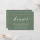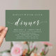 Mark the beginning of your forever with elegance using our contemporary sage green theme wedding elopement celebration invitation card, "Happily Ever After Dinner". Perfect for couples extending their joyous occasion, this invitation exudes sophistication with a hint of playfulness, setting the stage for a memorable event. Adorned with a timeless modern script design theme, it adds a touch of refined charm to your festivities. Crafted by TeeshaDerrick, this invitation promises to beautifully capture your love story.