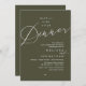 Announce and share your romantic wedding happily ever after in style with our modern olive green theme design "Happily ever after dinner" wedding elopement celebration invitation card. It is ideal for couples who have decided to celebrate their best day. With its sophisticated yet playful design, this invitation is sure to set the tone for an unforgettable event. The invitation card features a modern and minimalist script design theme, adding a touch of timeless elegance to your celebration. Designed by TeeshaDerrick