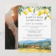 Diese elegante Happily Ever After Hochzeitsparty-Einladung mit Aquarell-Limonen und einer toskanischen Szene kann mit Ihren Informationen in schicker Typografie und einem besonderen Foto auf der Rückseite personalisiert werden. Entworfen von Thisisnotme