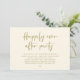 Elegantly announce your happily ever after with our modern yellow gold theme wedding elopement celebration invitation card, "Happily Ever After Party". Tailored for couples continuing their love story, this invitation strikes a perfect balance of sophistication and charm, setting the scene for an unforgettable event. Featuring a modern contemporary script design, it adds a touch of timeless grace to your special day. Designed by the talented TeeshaDerrick, this invitation is a stylish expression of your enduring love.