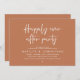 Celebrate the magical evening after “I do” with this sophisticated and romantic wedding reception dinner and dancing invitation — perfect for honouring the couple celebrating their big day. Design Highlights, Modern minimalist aesthetic with bold serif typography and flowing script, “Happily ever after party” headline sets a dreamy, timeless tone, Clean layout with ample space for all essential details (date, time, venue, RSVP info) and Crisp white text on terracotta brown background — classic, chic, and effortlessly elegant. Perfect for Intimate rehearsal dinners, Pre-wedding celebrations with family and close friends and Couples who love modern calligraphy and understated luxury.