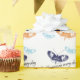 Freude inspirierende blaue und pfirsichfarbene Schmetterlinge finden