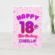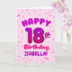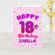 Celebrate their 18th birthday with a bright, cheerful, and personalizable birthday card! This custom name birthday card features a bold number eighteen balloon and pink confetti.