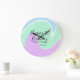 Happy 1st birthday pink green blue acrylic pour große wanduhr