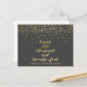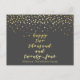 NewParkLane - Personalisierte Postkarte, mit 'glücklich 2024' (geschrieben als 'zweitausendvierundzwanzig') in eleganter Pinsel-/Schriftzeichen-Typografie in Imitaten Gold, mit goldenen Konfetti vor dunkelgrauem Hintergrund. Eine perfekte Karte für Neujahr!
