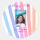 Happy 20th Birthday rainbow rustic boho lines phot Runder Aufkleber