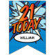 Personalisieren Sie den Namen, um ein einzigartiges 21. Geburtstagsbanner zu erstellen. Ein cooles, trendiges und lustiges Comic Buch Pop Art Design, das den wackeligen zap pow in jedermanns 21. Geburtstagsfeier. Ein tolles Geschenk für Sie, Ihre Freunde oder Ihre Familie. Entworfen von ComicBookPop© unter www.zazzle.com/comicbookpop*